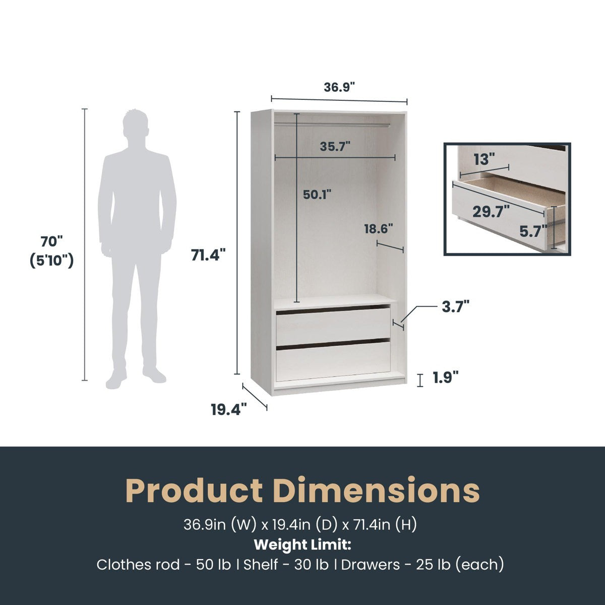 - One hanging rod for coats, shirts, or formal wear