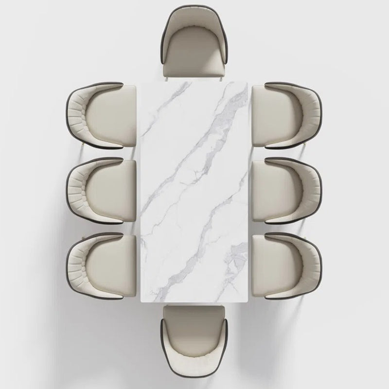 This modern marble dining table set follows a minimalist design philosophy—simple, elegant, and sophisticated. The clean structure allows the beauty of the materials to stand out, creating a calm and refined dining environment.