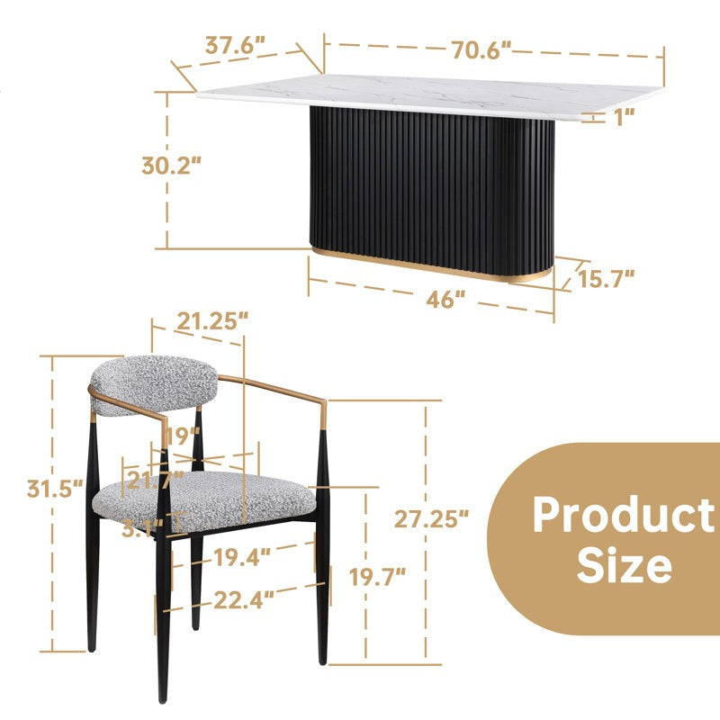 Finish: Satvario Marble Top | Fluted Base with Golden Strip | Imported Chairs