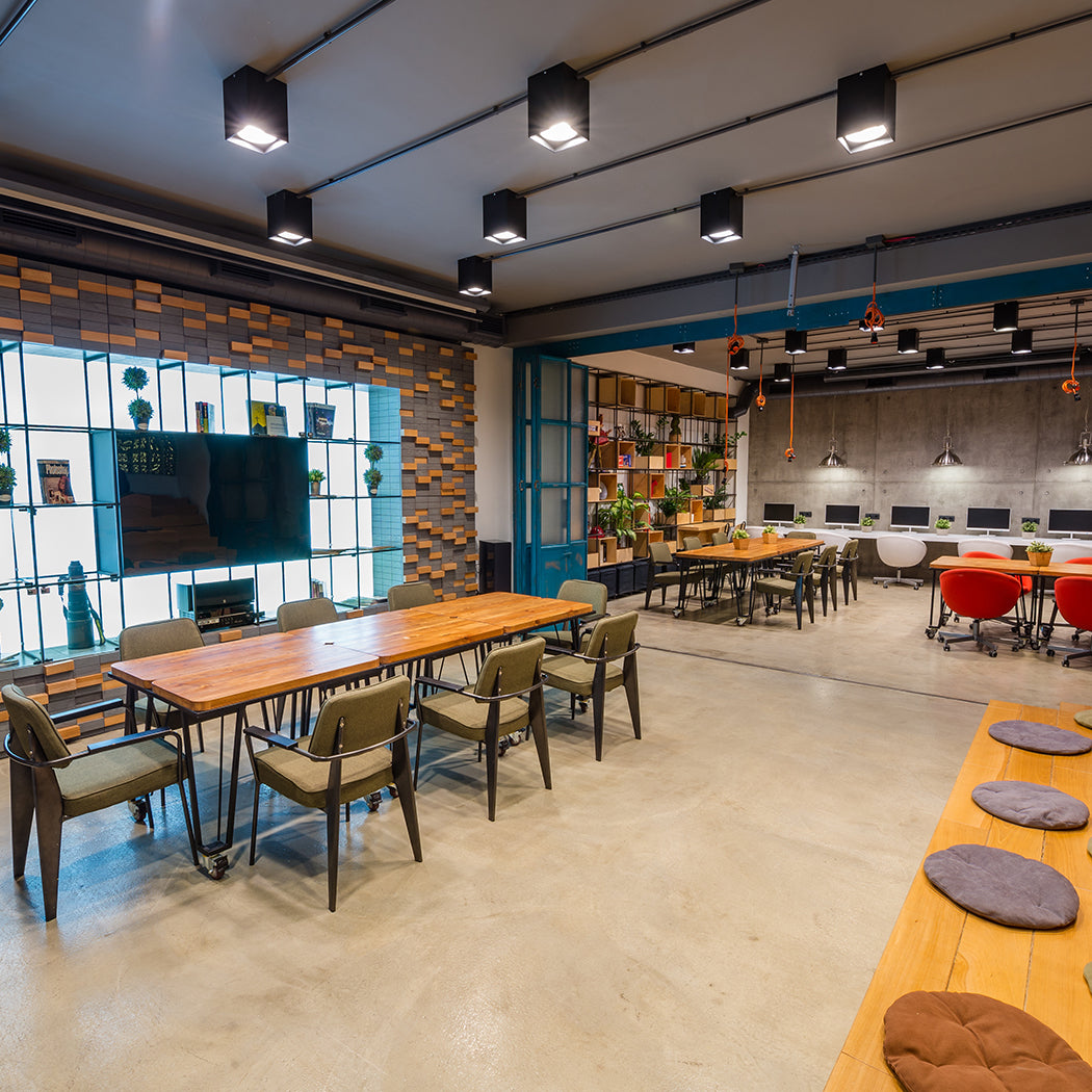 • Includes cabins, open workstations, meeting rooms, lounges, and collaboration areas.