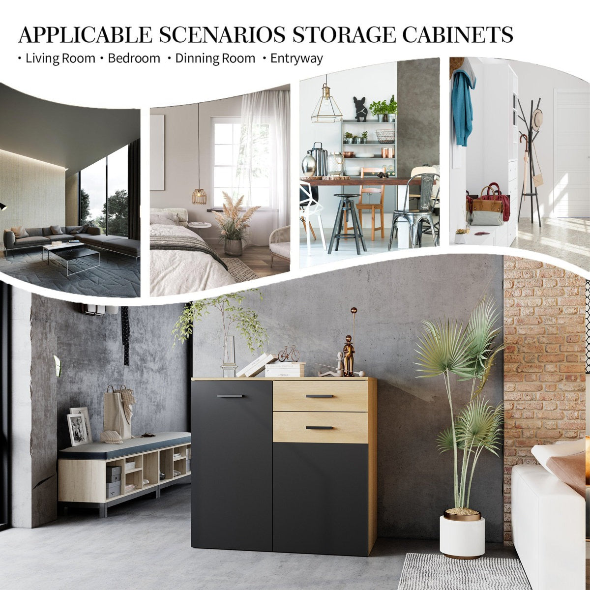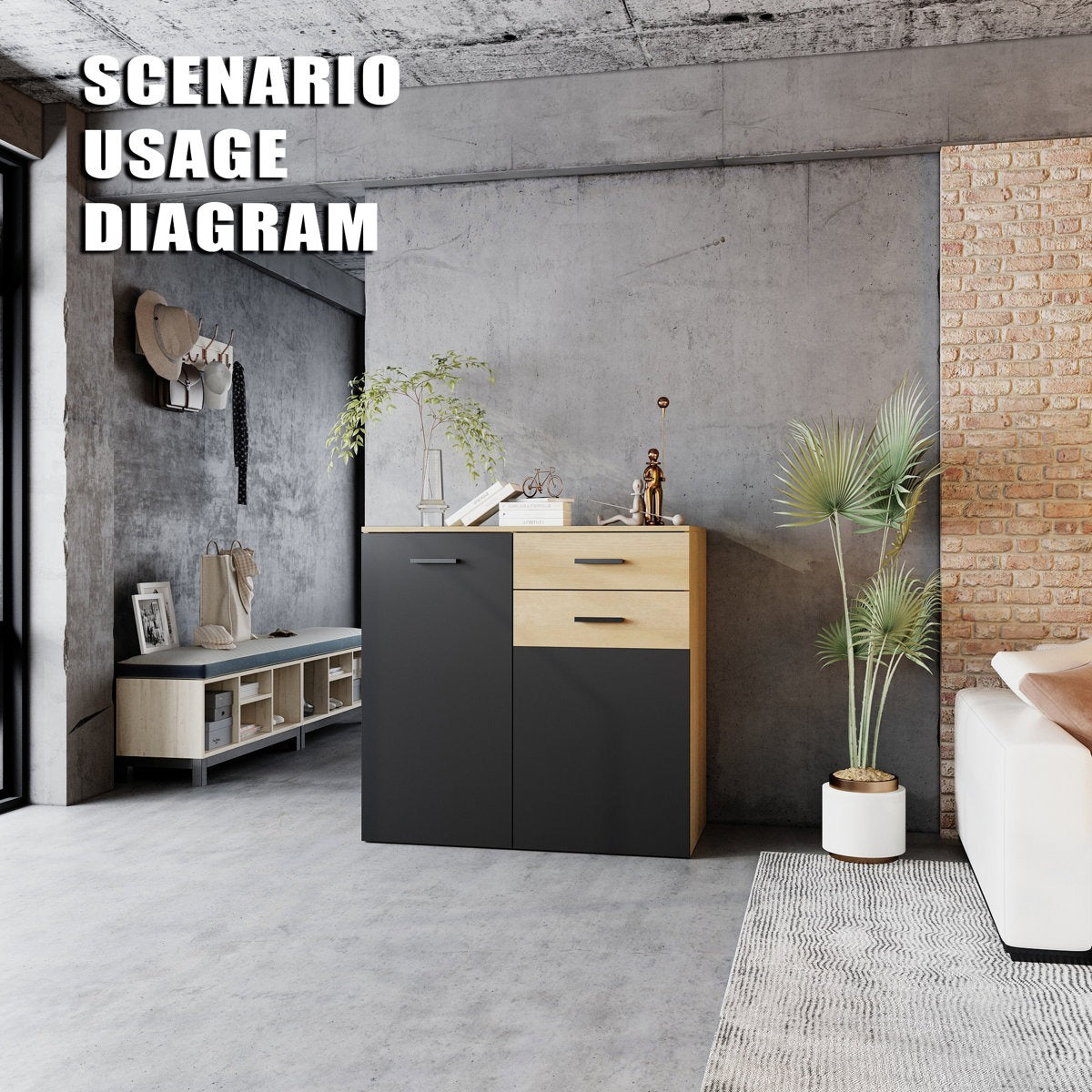 ·         2-drawer multifunctional cabinet with rustic-modern charm