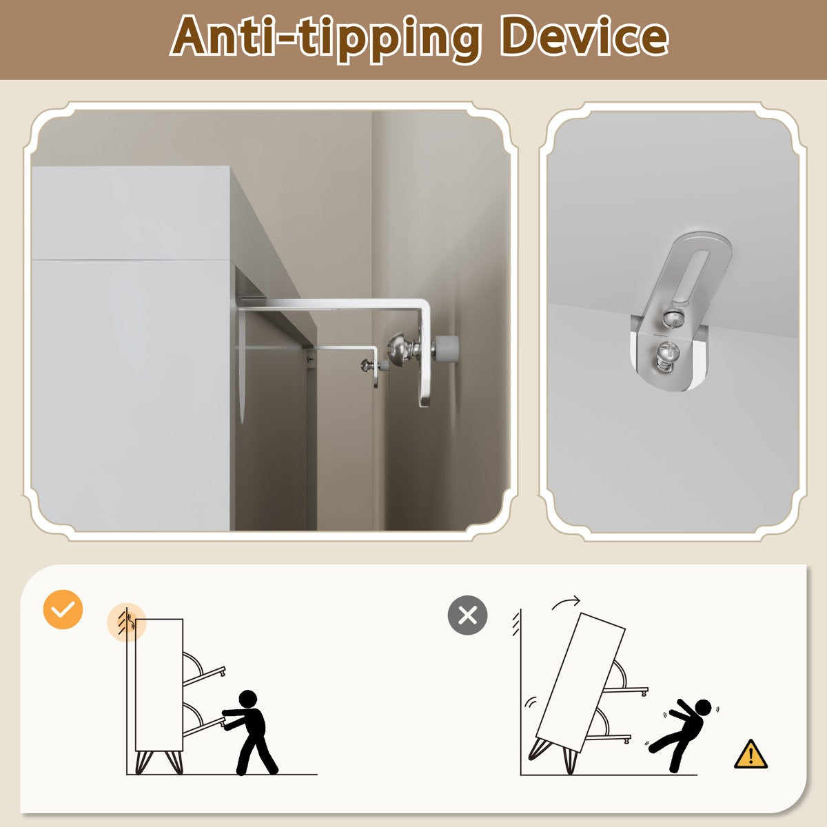 Equipped with an anti-toppling device, the cabinet ensures stability and safety, making it especially suitable for homes with children. -