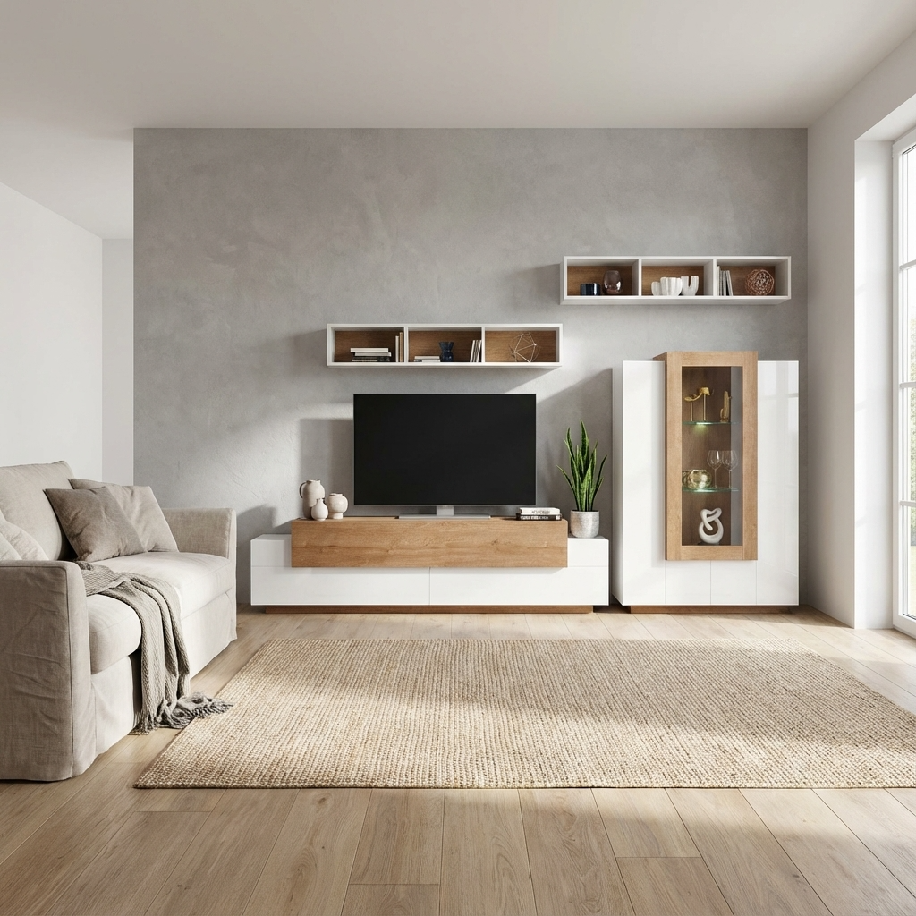 Usage: Ideal for modern living spaces, this 4-piece entertainment center includes: