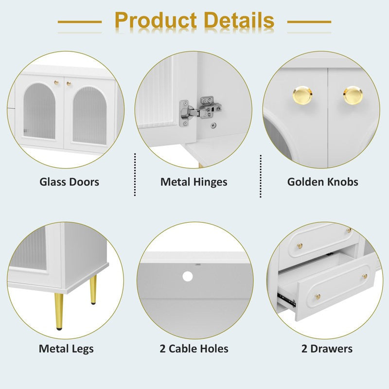 Sleek, stylish, and functional, the White Broho TV Stand adds a touch of luxury and sophistication to any space. With arched glass doors, golden knobs, and a bold white high-gloss PU paint finish, it’s designed to impress while providing ample storage for all your entertainment essentials.