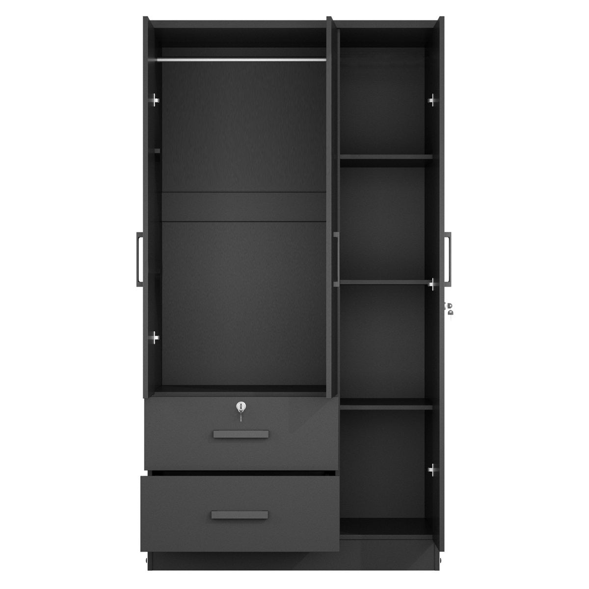 Minji Black 3-Door & 2-Drawer Wardrobe