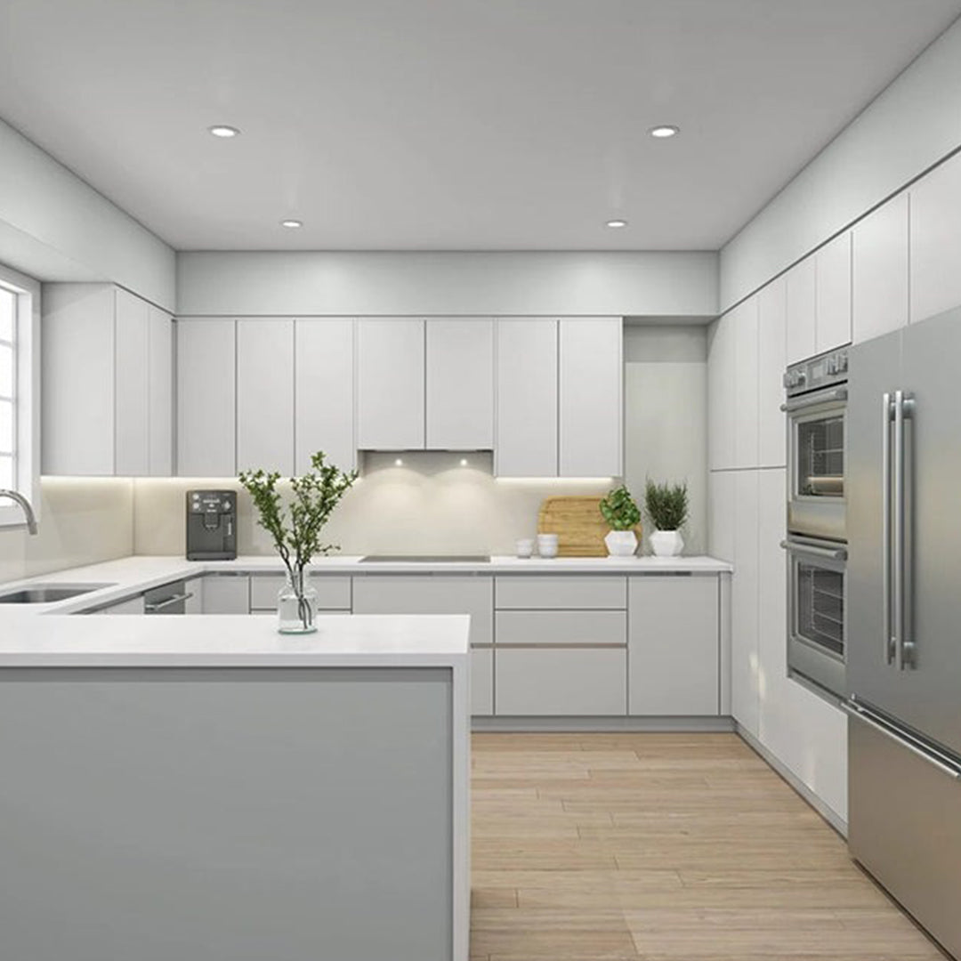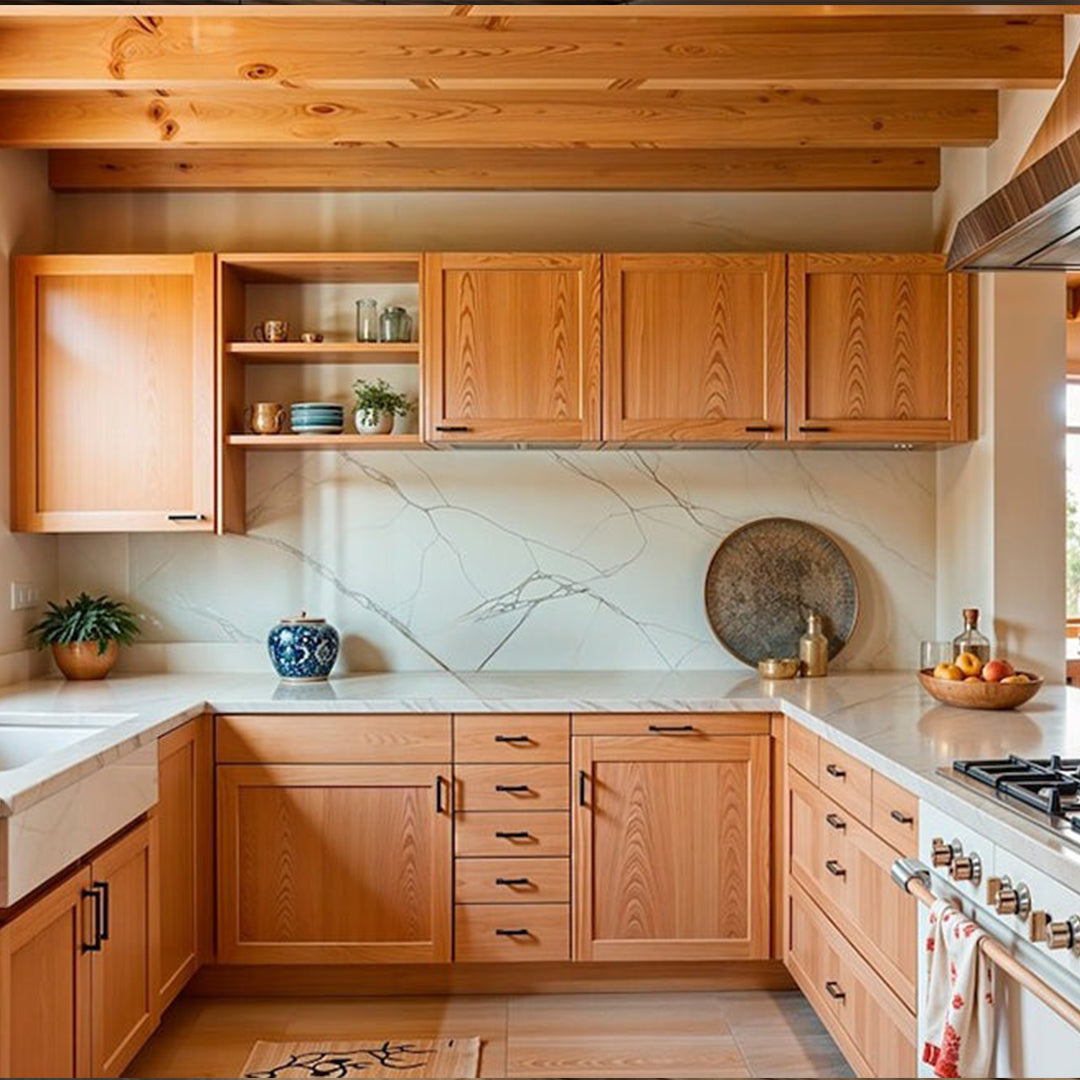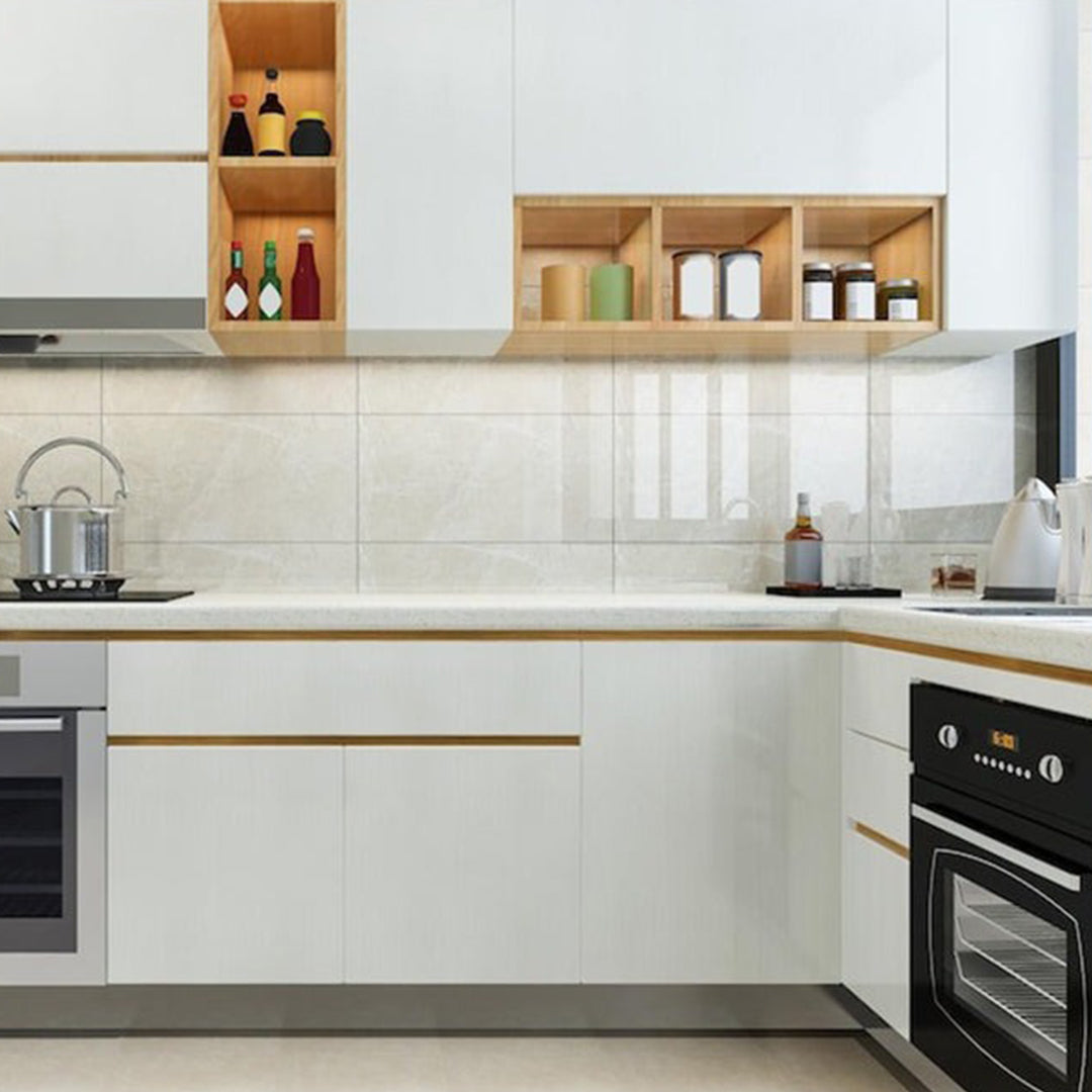 Best for: Medium to large kitchens, open layouts. Advantages: Provides ample counter space. Efficient work triangle between stove, sink, and fridge. Allows space for a small dining area or island.