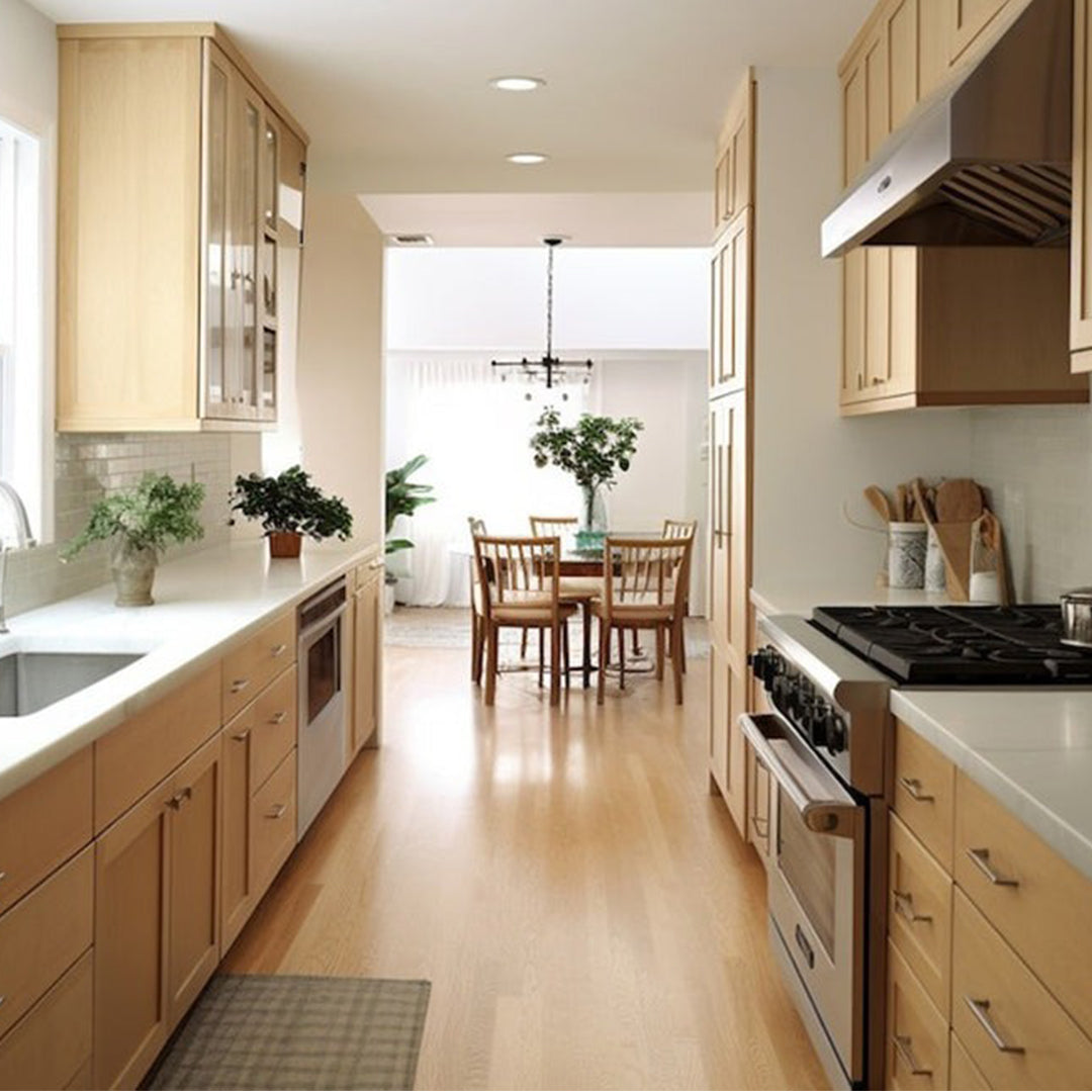 Best for: Compact homes and narrow kitchen spaces. Advantages: Efficient workflow with two parallel counters. Maximizes space utilization. Reduces unnecessary movement while cooking.